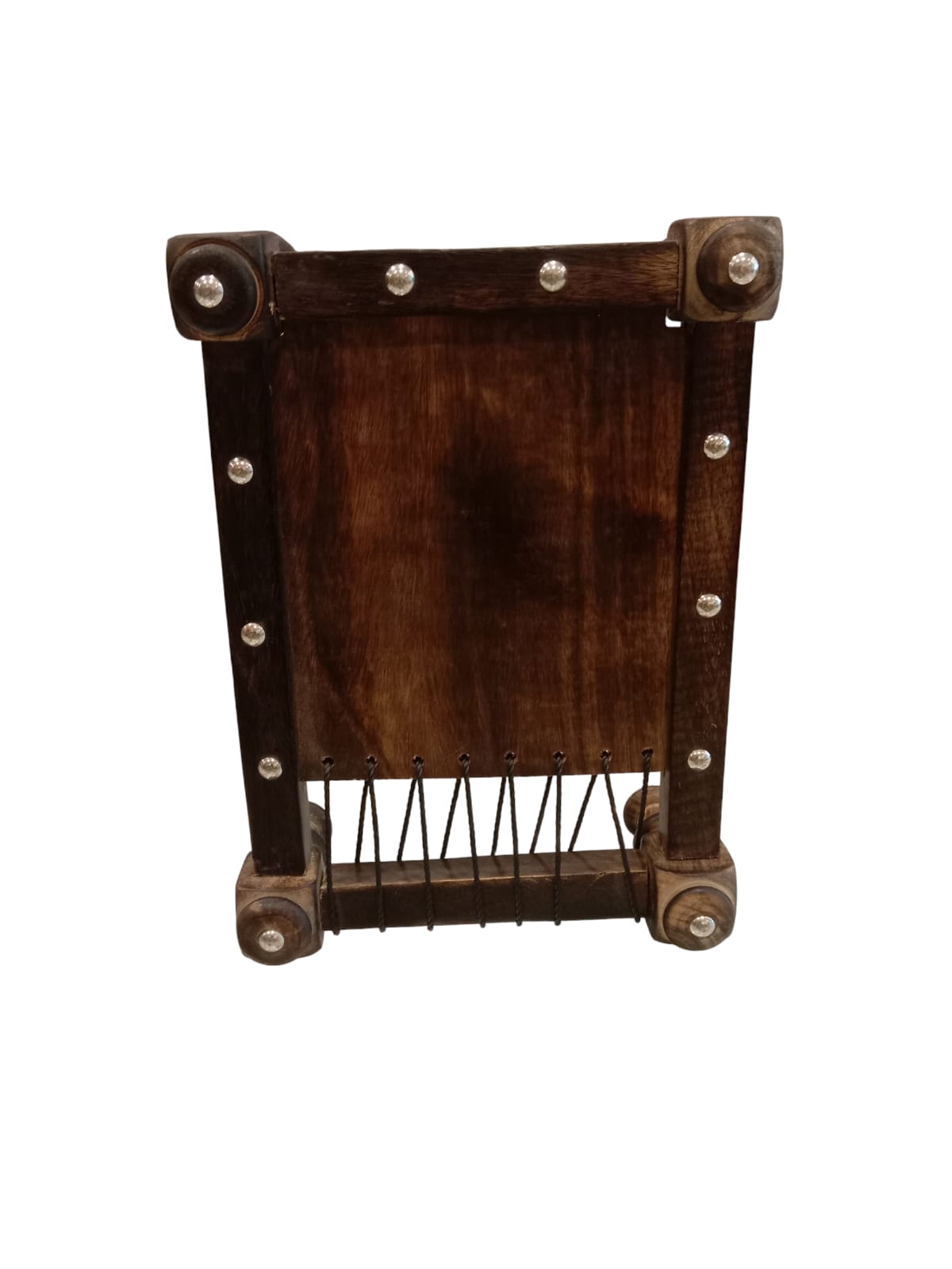 लकड़ी का फ्रेम – शिशम, लकड़ियों से तैयार, जो टिकाऊ और ग्रामीण सौंदर्य को दर्शाता है।