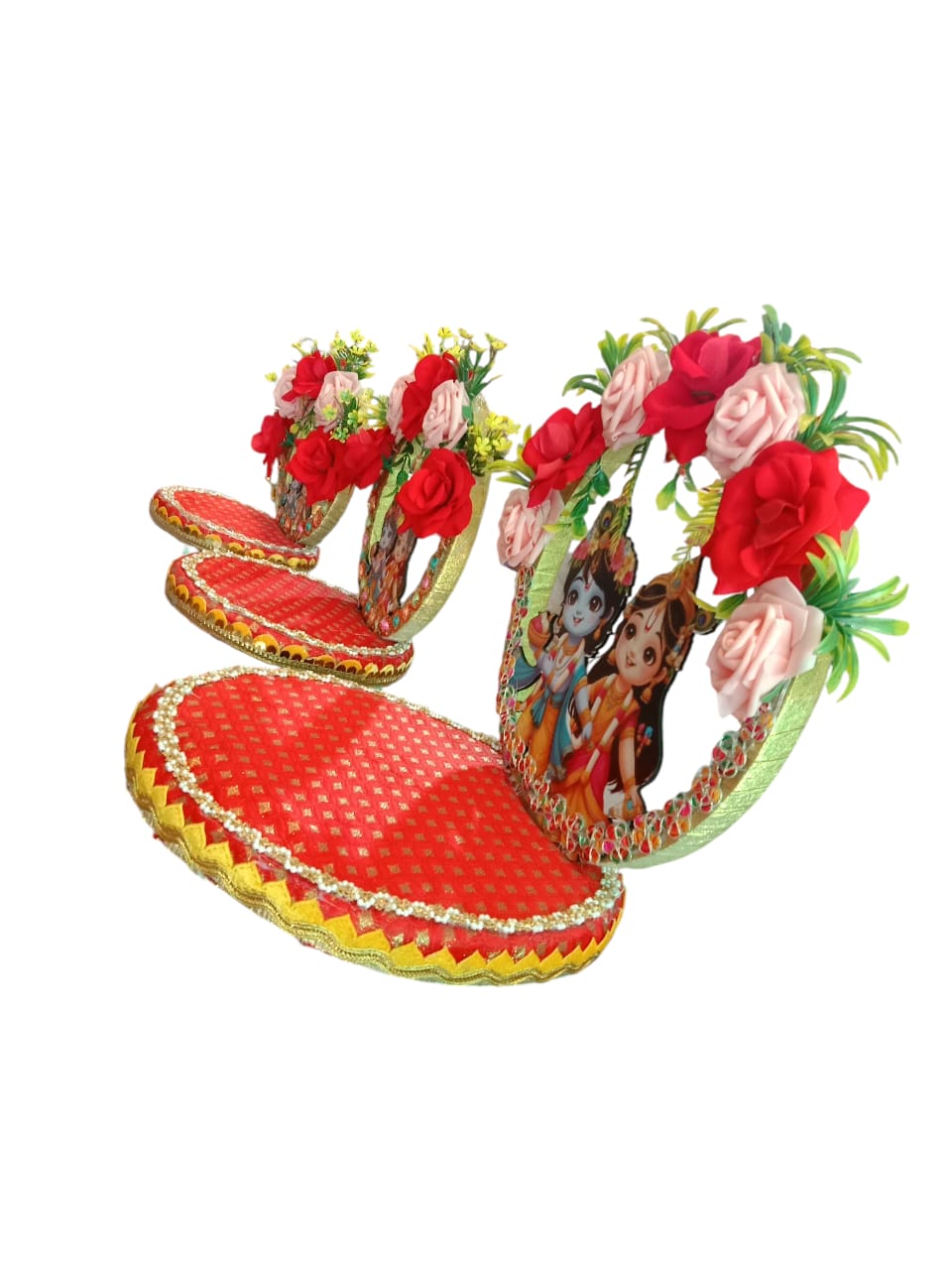 A Laddu Gopal Ji Flower‑Light Asan is a stunning, devotional altar adornment combining vibrant floral garlands and gentle illumination to create a divine aura around the idol. Here’s a breakdown: