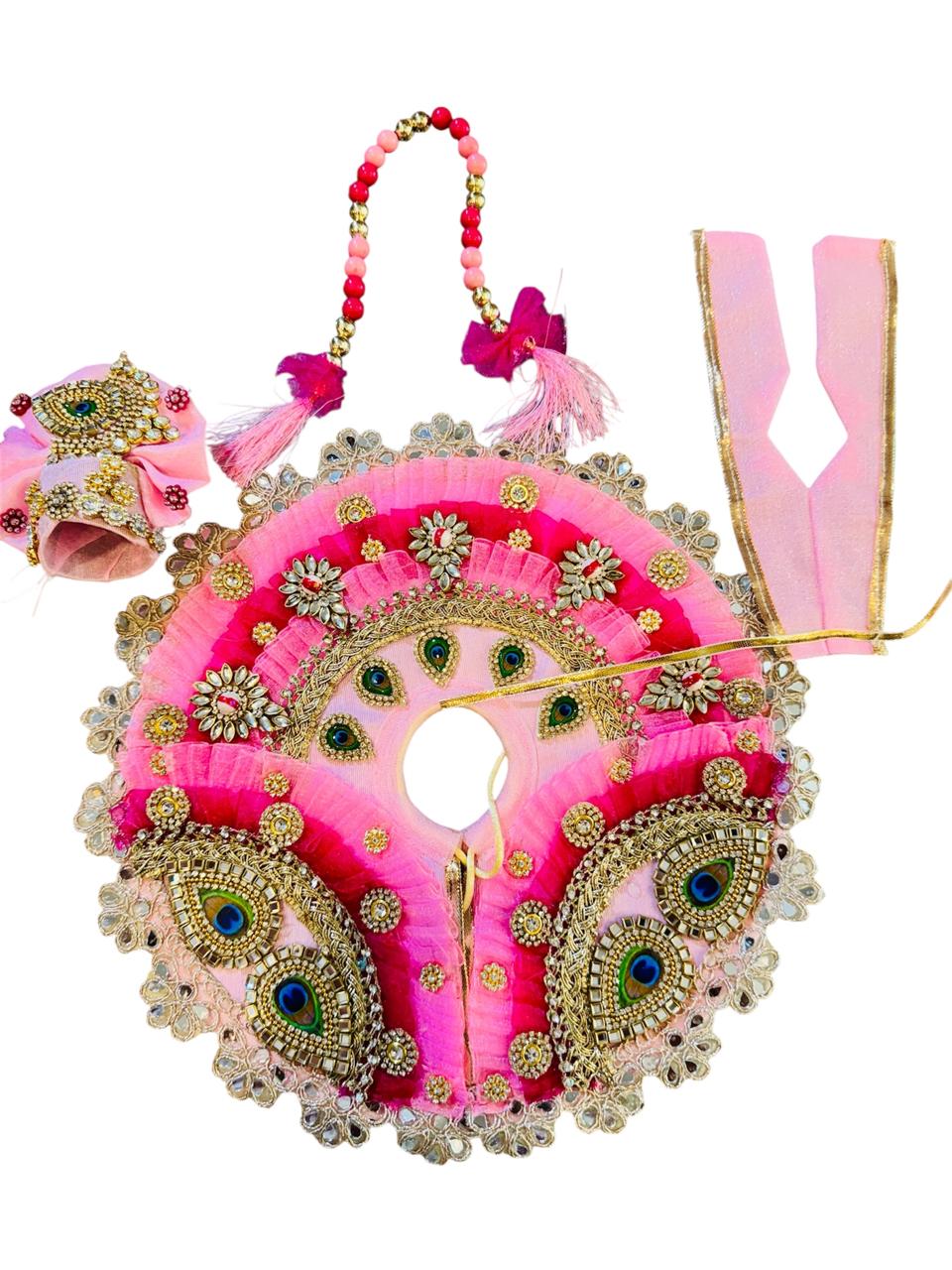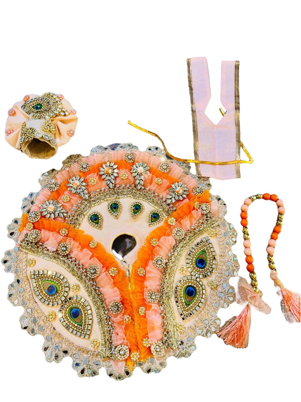 Here’s a vivid description of a Laddu Gopal ji poshak featuring mirror work and mor-pankh (peacock feather) accents, tailored in yellow, blue, orange, and pink themes:
